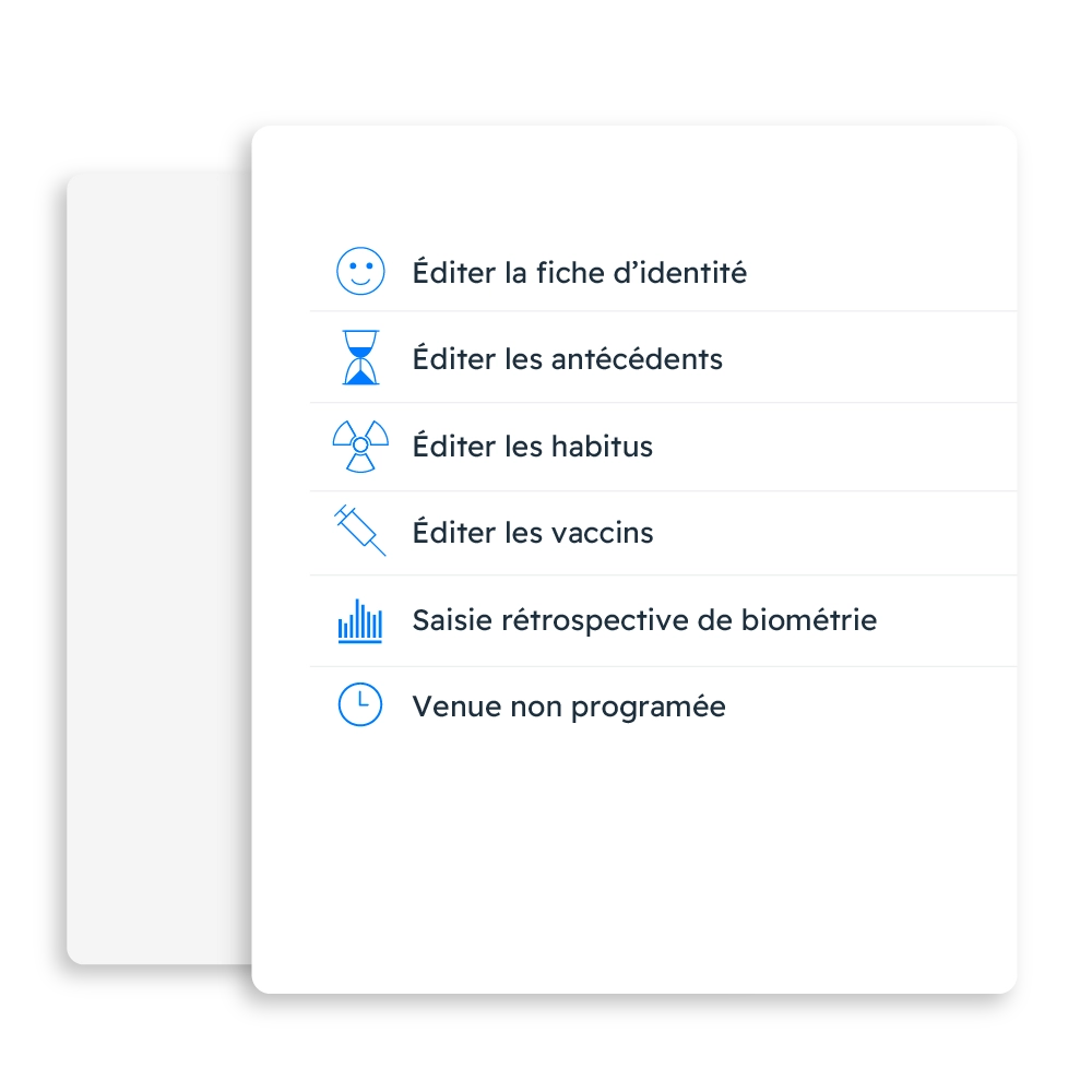 Cette solution propose aussi des actions adaptées ( Rappel vaccins, examens complémentaires.. ).
