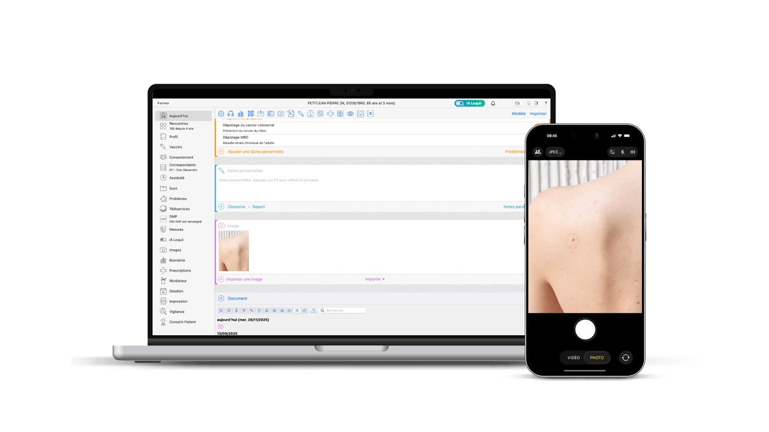 Consultation et alimentation du dossier patient directement depuis le logiciel, sans changer d’outil.